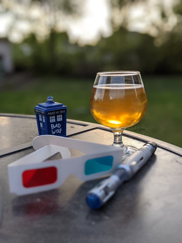“Weirdmageddon” is a sour plum melomel. It’s off-dry with just enough sweetness to balance the tartness. Ringing in at 11.5% ABV, this mead is one to be cautious of… like a certain triangular interdimensional fiend.